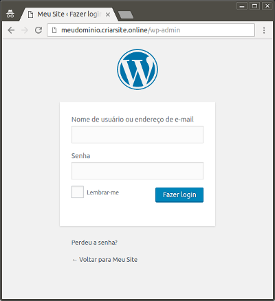 O acesso ao painel administrativo do WordPress via browser acontece da seguinte maneira:
