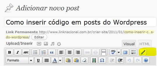 Para inserir o código eu cliquei no ícone do Auto SyntaxHighlighter