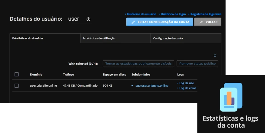 painel de controle confiável e focado em resultados. Explore as possibilidades que ele oferece para transformar a administração do seu site em uma experiência descomplicada.