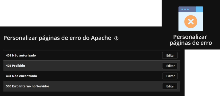 Os usuários podem criar mensagens e saídas personalizadas para códigos de erro 401, 403, 404 e 500.