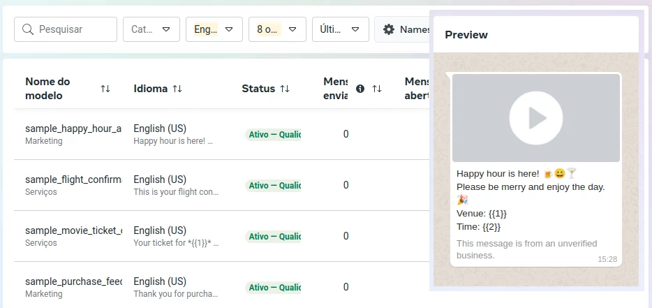 - Criar modelos de mensagens, esses modelos serão as mensagens disparadas, elas precisam ficar definidas dentro da plataforma do WhatsApp, veja como criar.